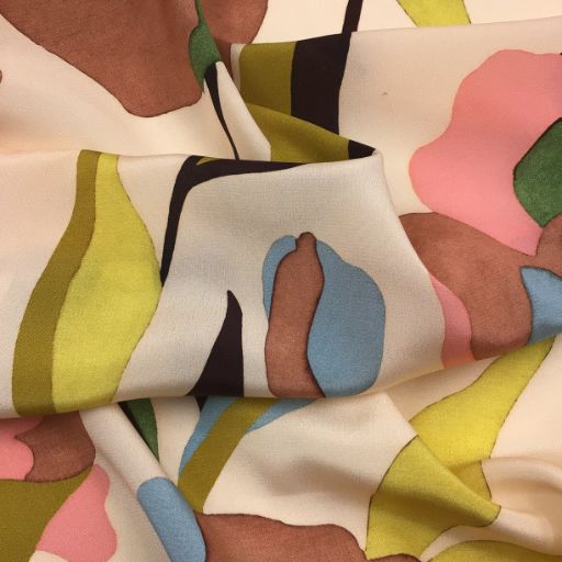 Of course, sustainability is not forgotten and in fact plays a large role in this collection. We see recycled and GRS-certified polyesters and polyamides, volies, and jacquard gauzes in organic GOTS-certified cotton, FSC-certified viscose crepe de chine, and Europen Flax-certified linen.